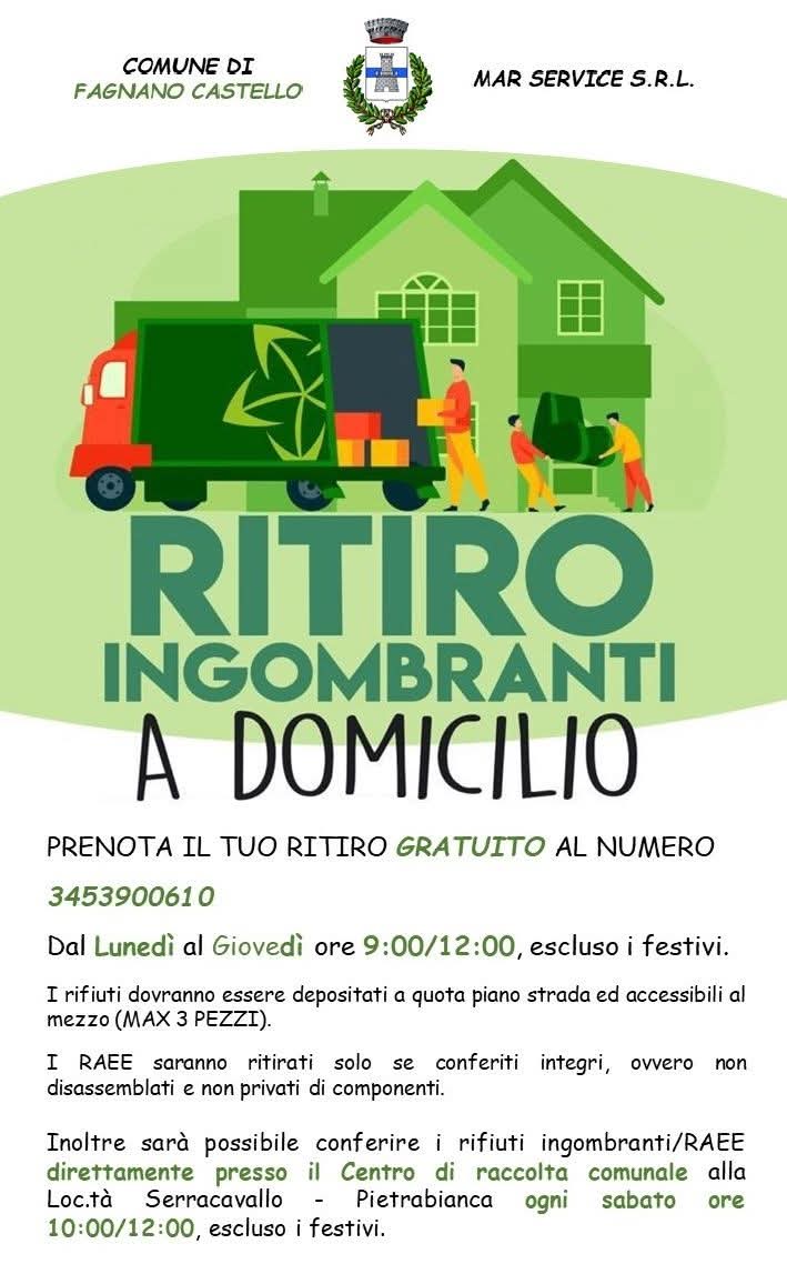 È possibile prenotare gratuitamente il servizio di ritiro a domicilio telefonando al numero 3453900610.